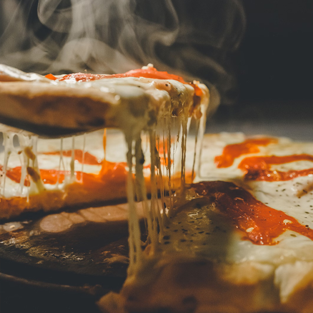 خمیر پیتزا آمریکایی، فیله مرغ طعم دار شده، قارچ، فلفل دلمه ای، سس مخصوص، پنیر پیتزا، پنیر پروسس، به همراه سس تک نفره