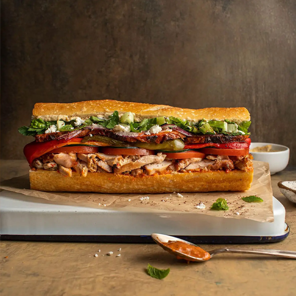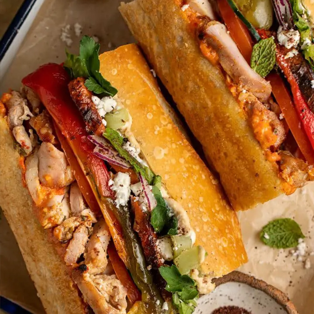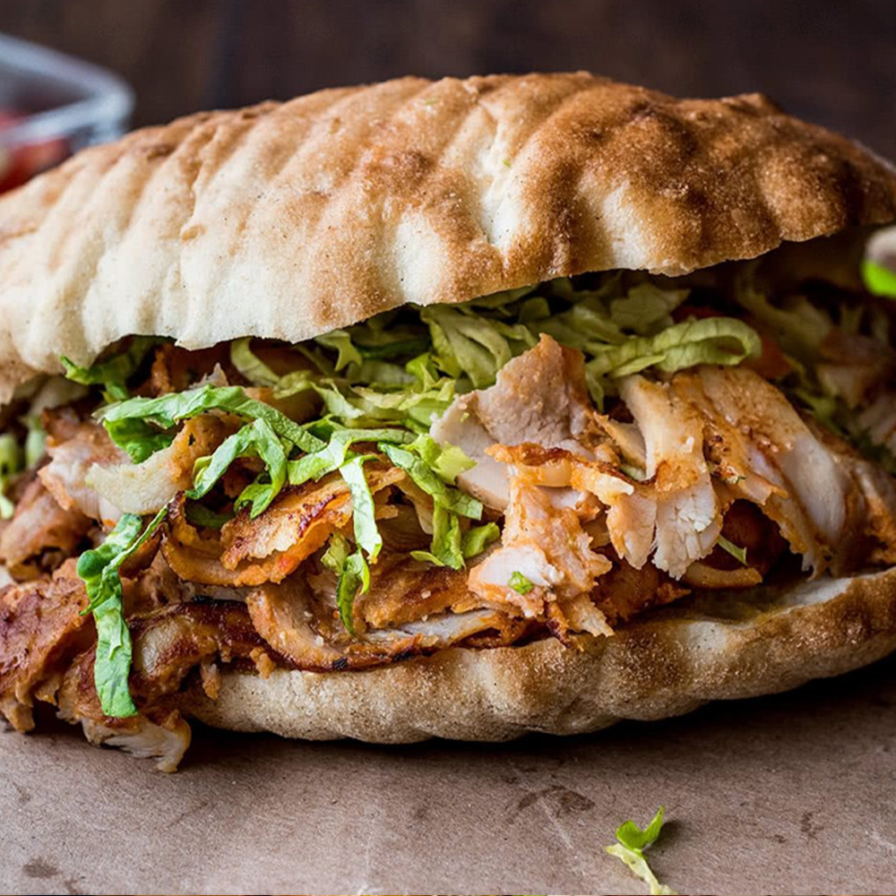 ۱۲۰ گرم کباب ترکی گوشت گوسالە با پیاز و جعفری و سس مخصوص گوجه فرنگی، با نان لواش ترکی دورچین:سیب زمینی سرخ شدە، لیمو ترش، سالاد ترکی با سس انار